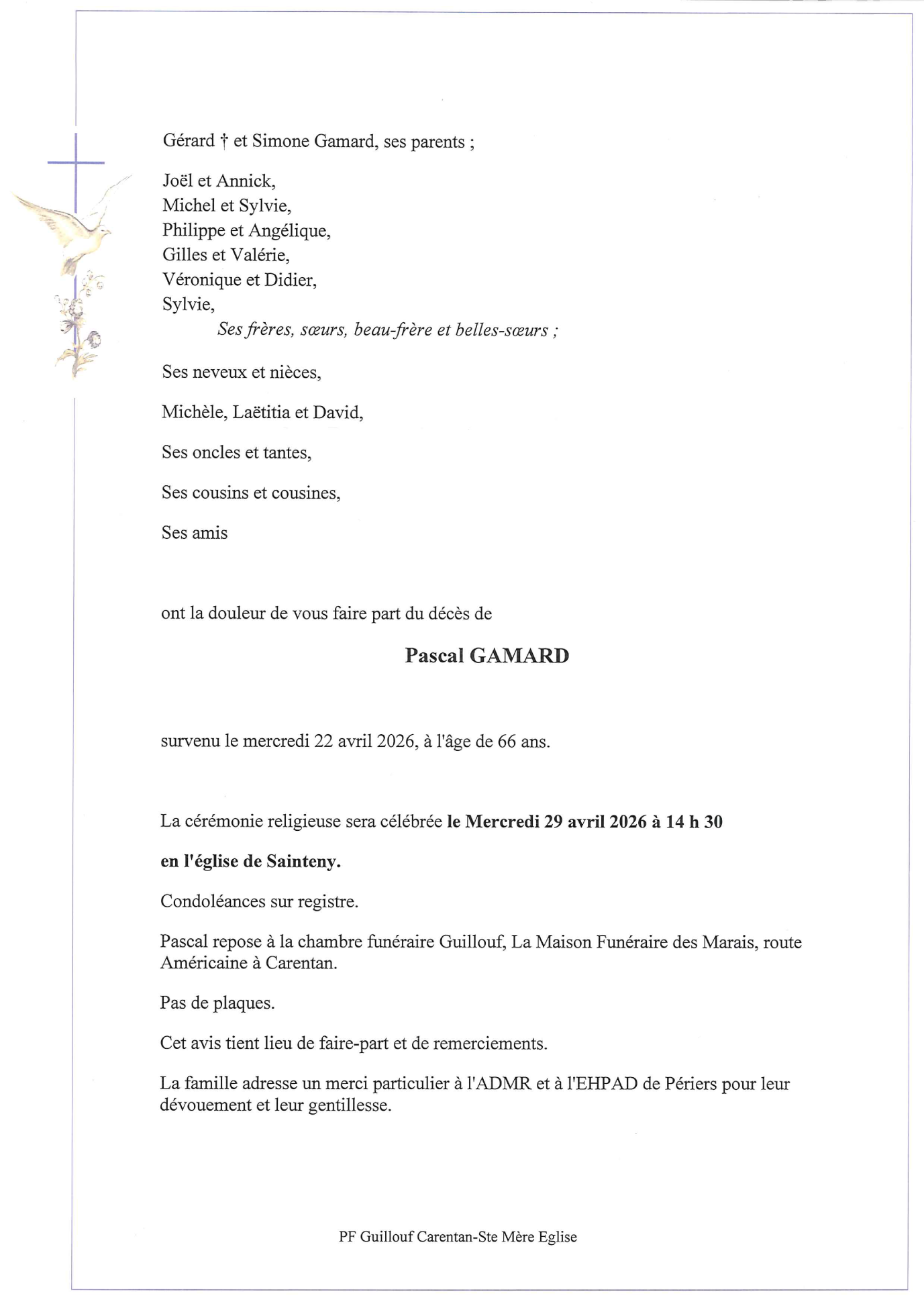 cimetière de Sainteny le mercredi 29 avril