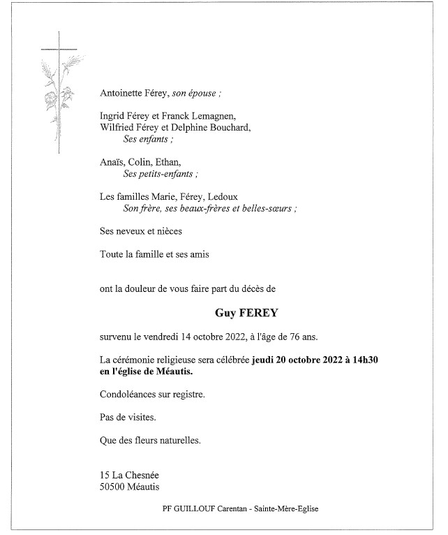 Décédé à Saint-Lô (50000, France) le vendredi 14 octobre 2022 à l'âge de 76 ans
