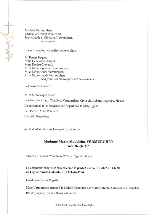 Madame Marie-Madeleine VERMURGHEN née BEQUET