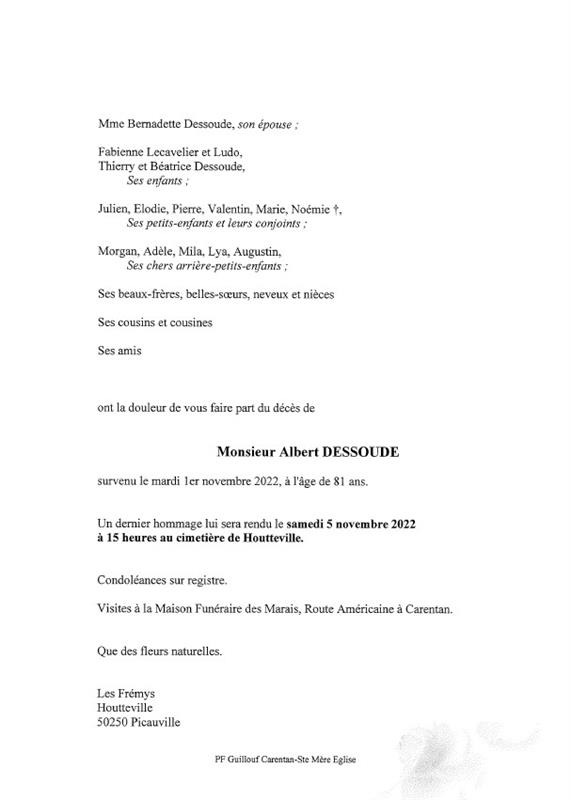 Décédé à Cherbourg-En-Cotentin (50100, France) le mardi 1 novembre 2022 à l'âge de 81 ans