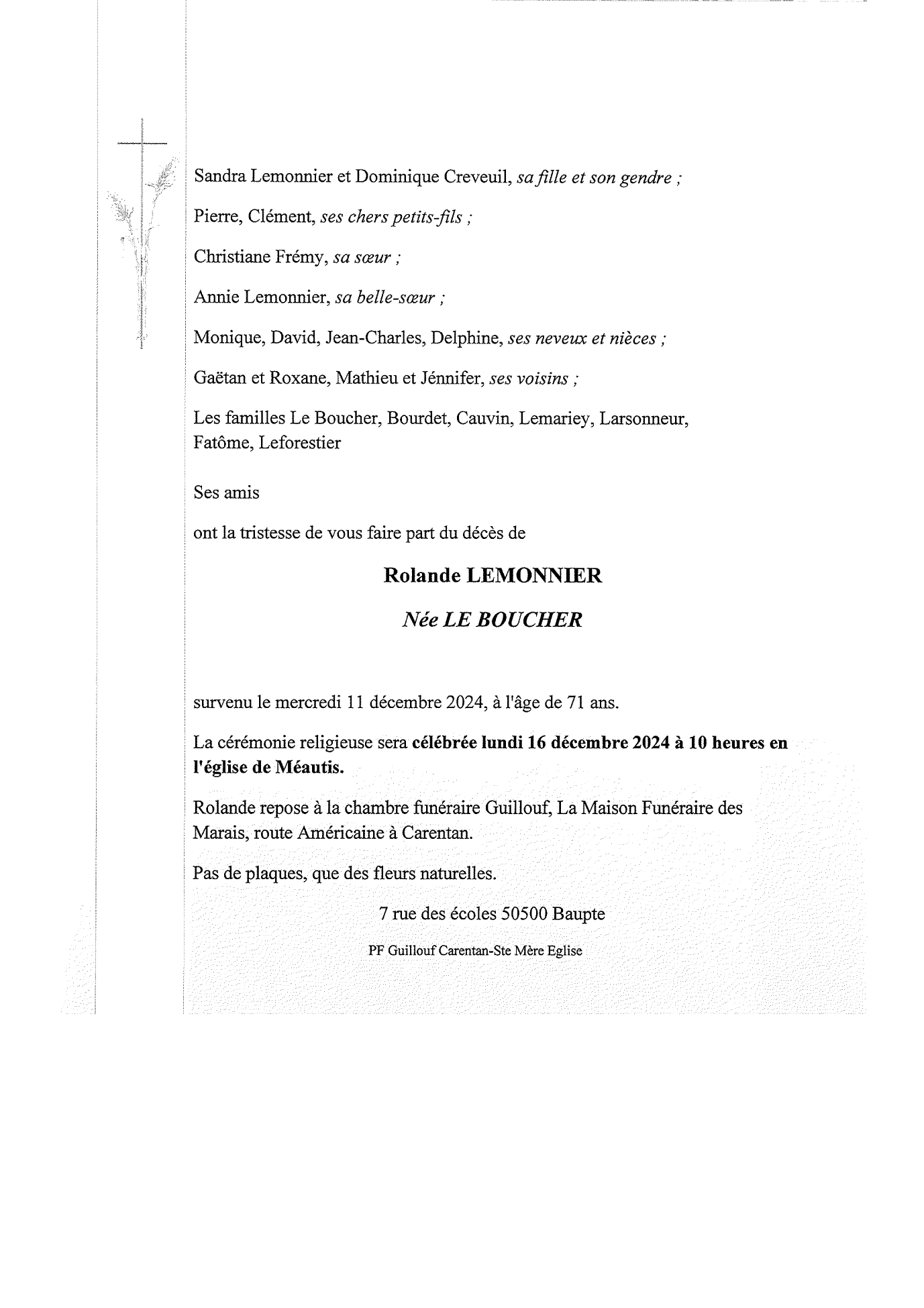 Décédée à Caen (14000, France) le mercredi 11 décembre 2024 à l'âge de 71 ans