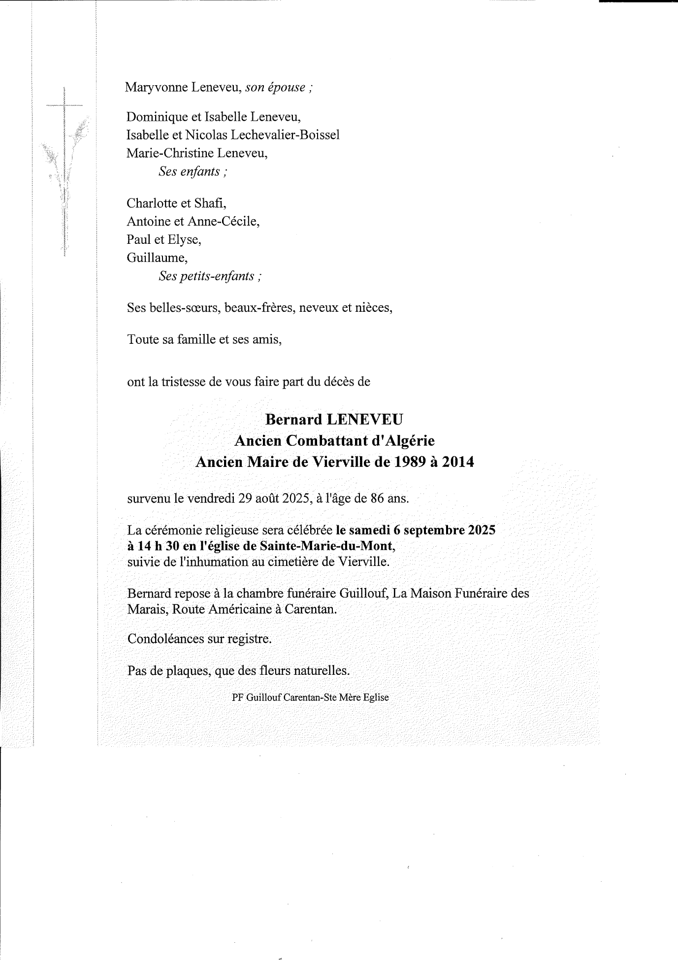 Décédé à Carentan (50500, France) le vendredi 29 août 2025 à l'âge de 86 ans
