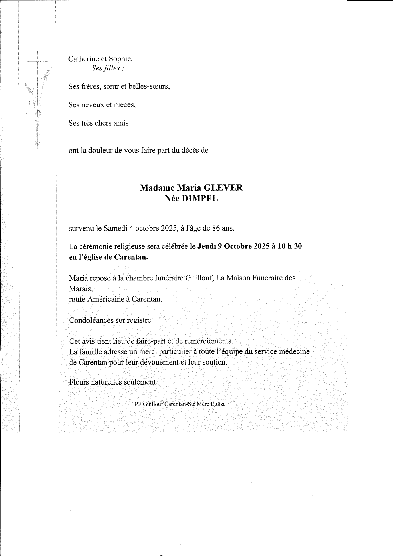 Décédée à Carentan (50500, France) le samedi 4 octobre 2025