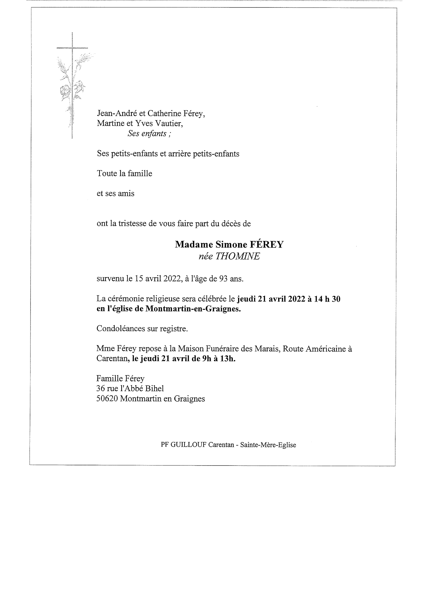 Décédée à Saint-Lô (50000, France) le vendredi 15 avril 2022 à l'âge de 93 ans