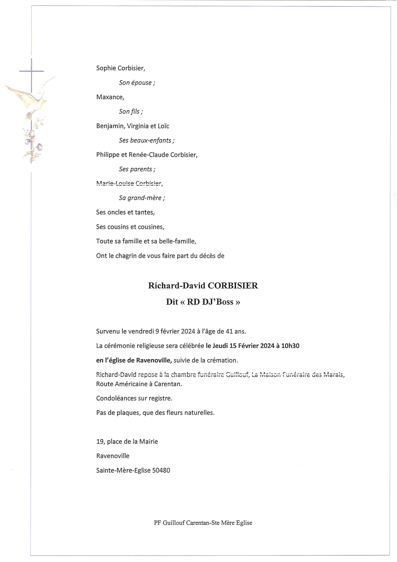 Décédé à Ravenoville (50480, France) le vendredi 9 février 2024 à l'âge de 41 ans