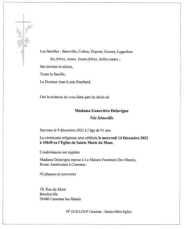 Madame Geneviève DELAVIGNE née Sénoville
