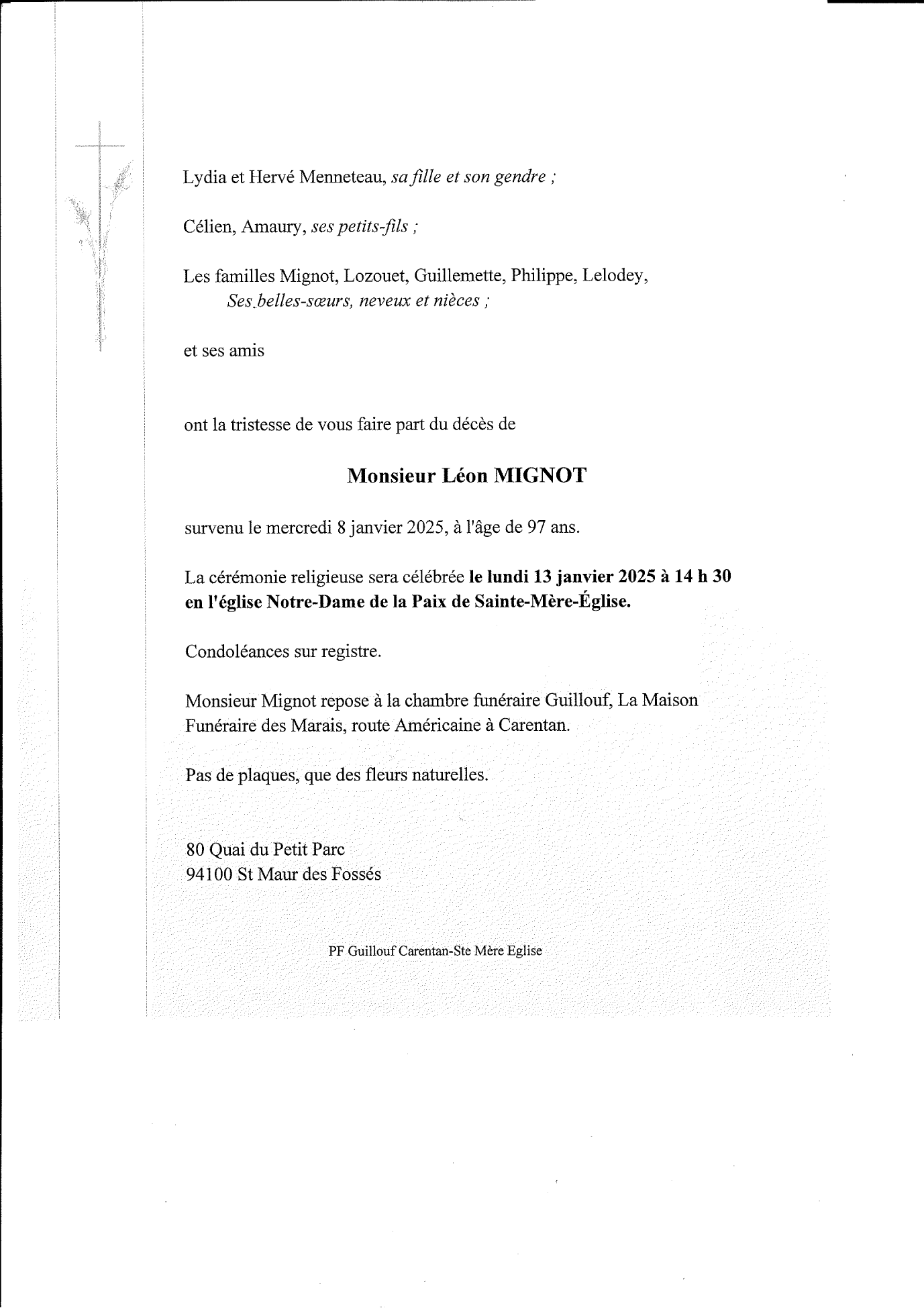 Décédé à Cherbourg-En-Cotentin (50100, France) le mercredi 8 janvier 2025 à l'âge de 97 ans