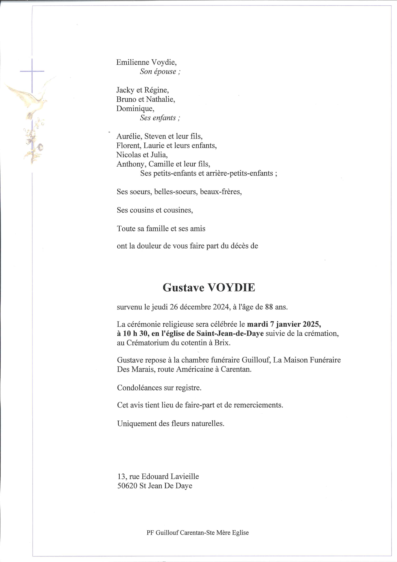 Décédé à Saint-Lô (50000, France) le jeudi 26 décembre 2024 à l'âge de 88 ans