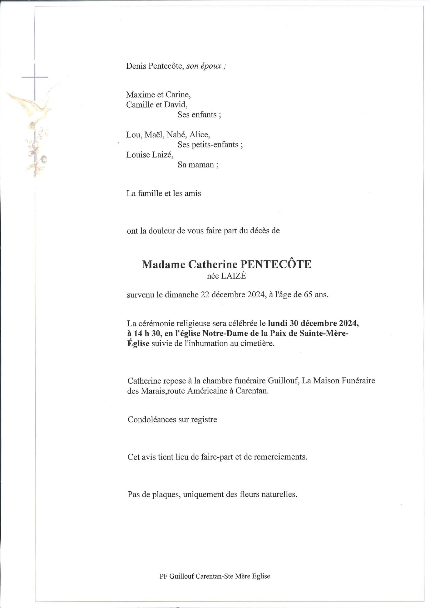 Décédée à Cherbourg-En-Cotentin (50100, France) le dimanche 22 décembre 2024 à l'âge de 65 ans