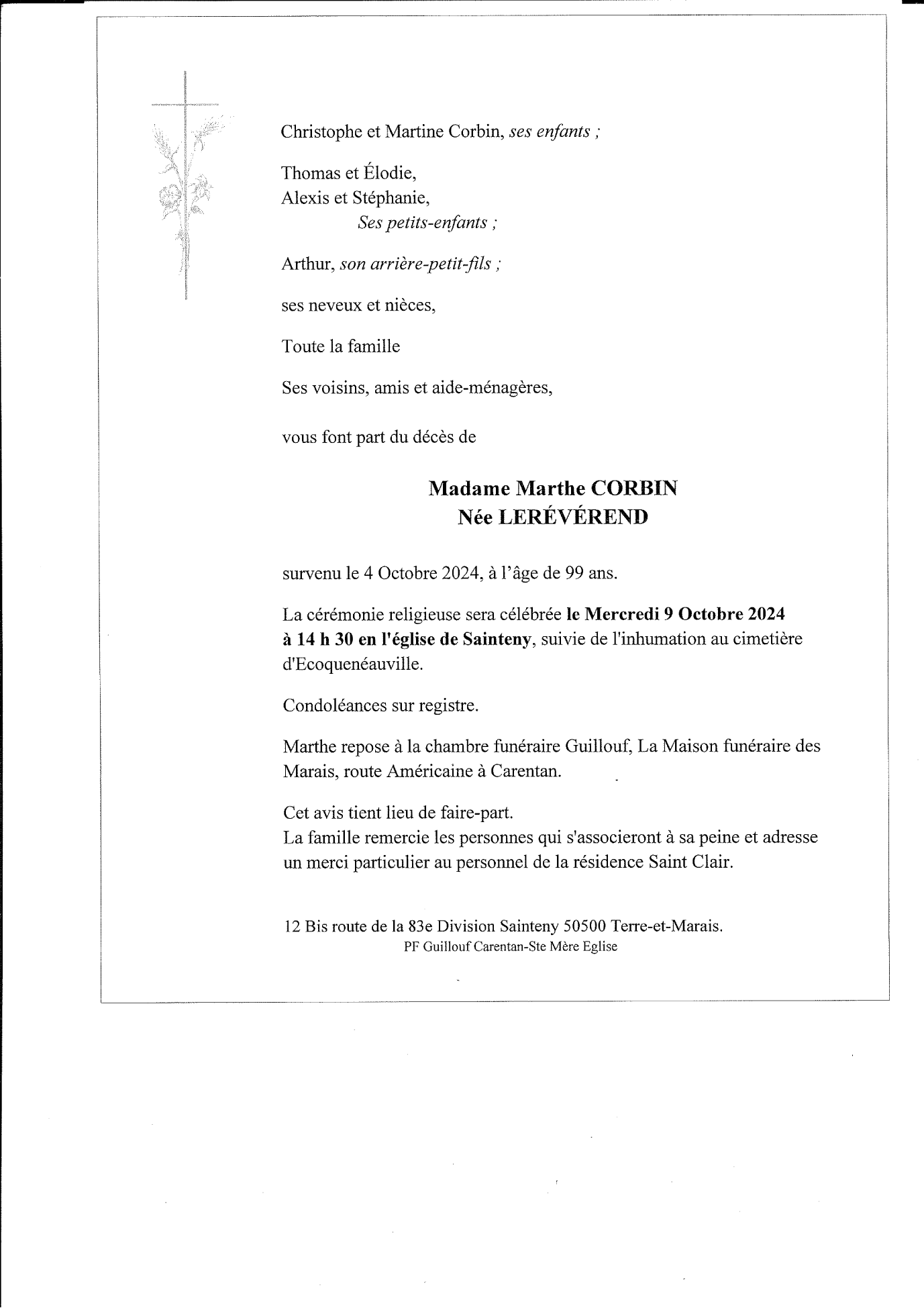 Madame Marthe CORBIN née LERÉVÉREND