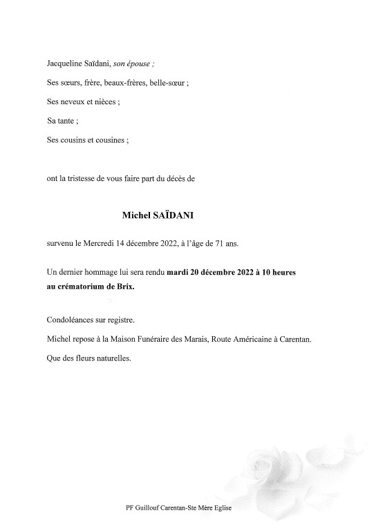 Epoux de Madame Jacqueline SAÏDANI