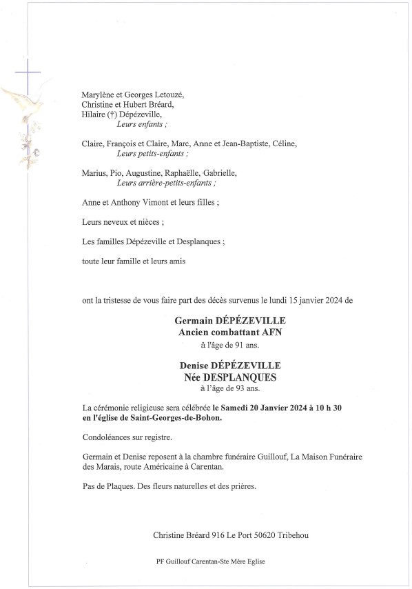 Veuf de Madame Denise DÉPÉZEVILLE