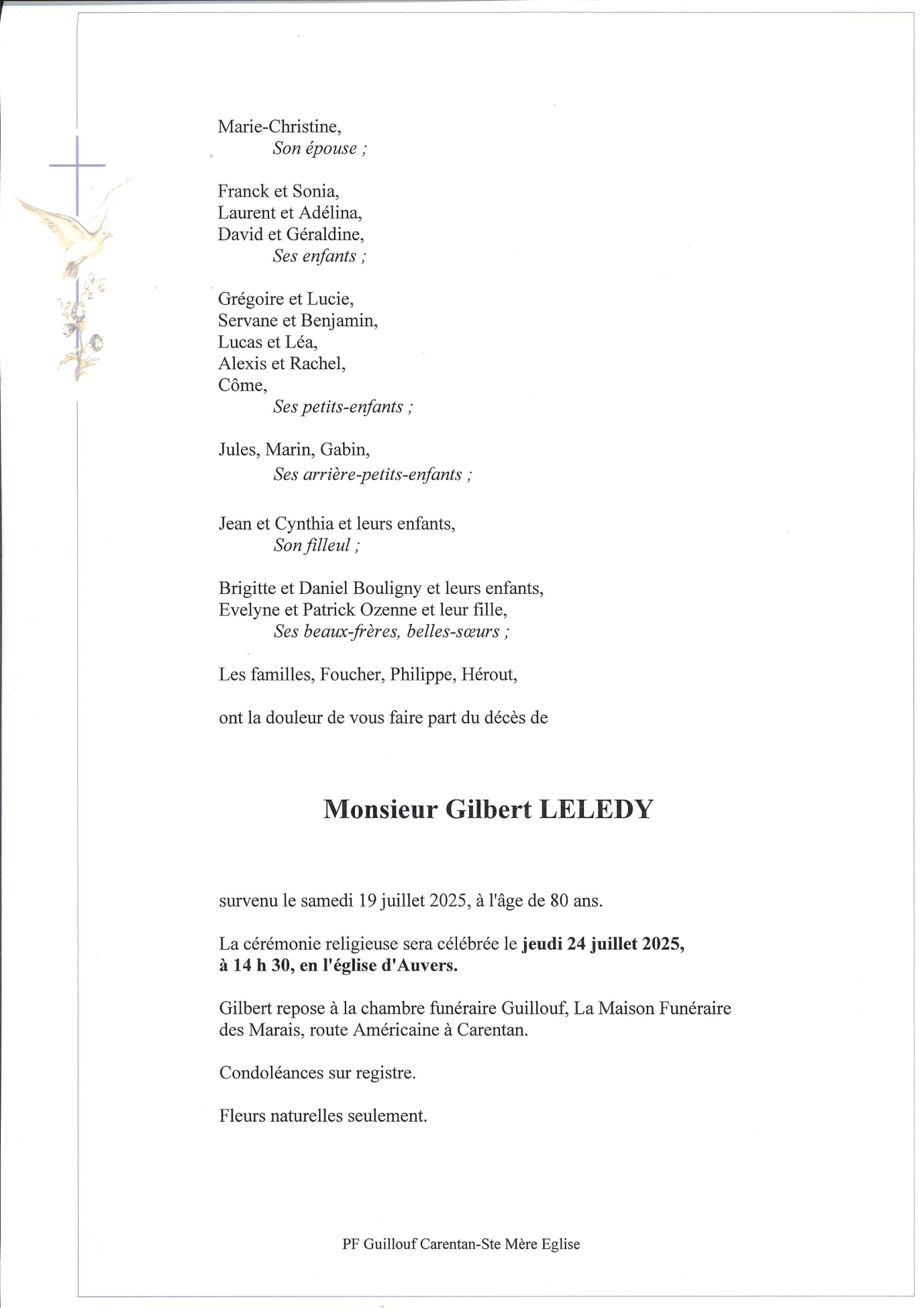 Décédé à Saint-Lô (50000, France) le samedi 19 juillet 2025 à l'âge de 80 ans