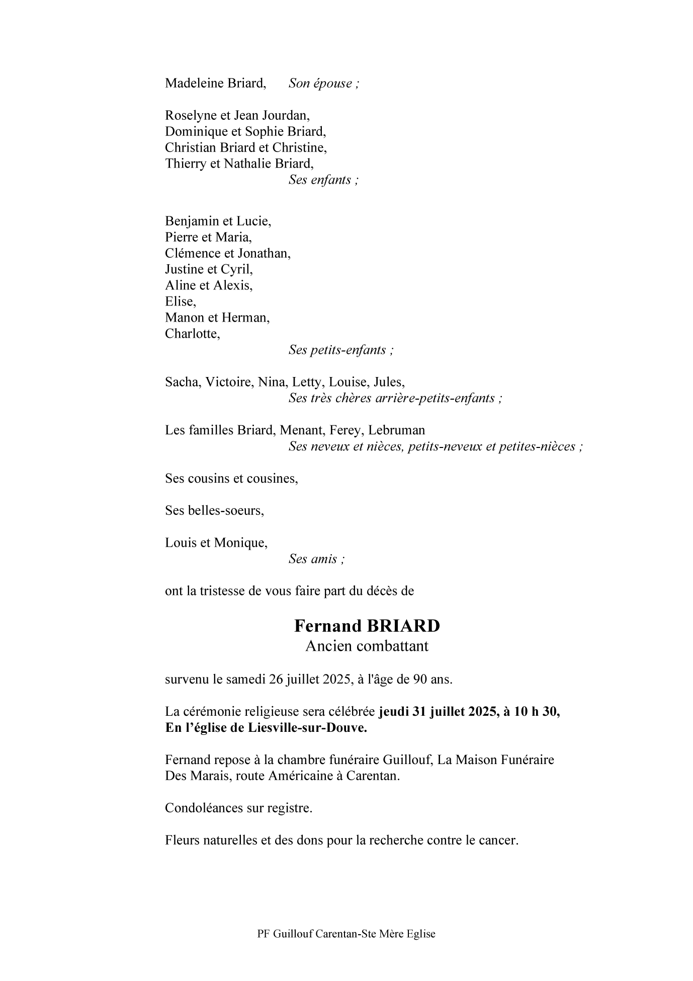 Décédé à Carentan (50500, France) le samedi 26 juillet 2025 à l'âge de 90 ans
