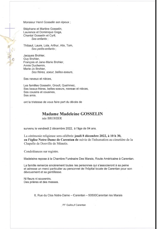 Epouse de Monsieur Henri GOSSELIN
