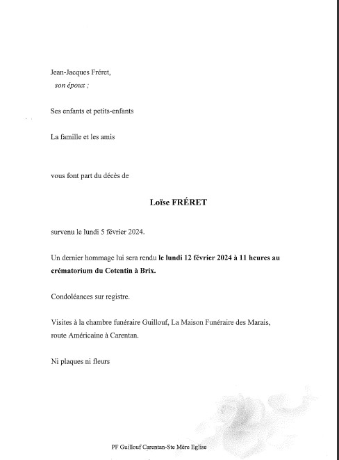 Décédée à Saint-Lô (50000, France) le lundi 5 février 2024 à l'âge de 73 ans