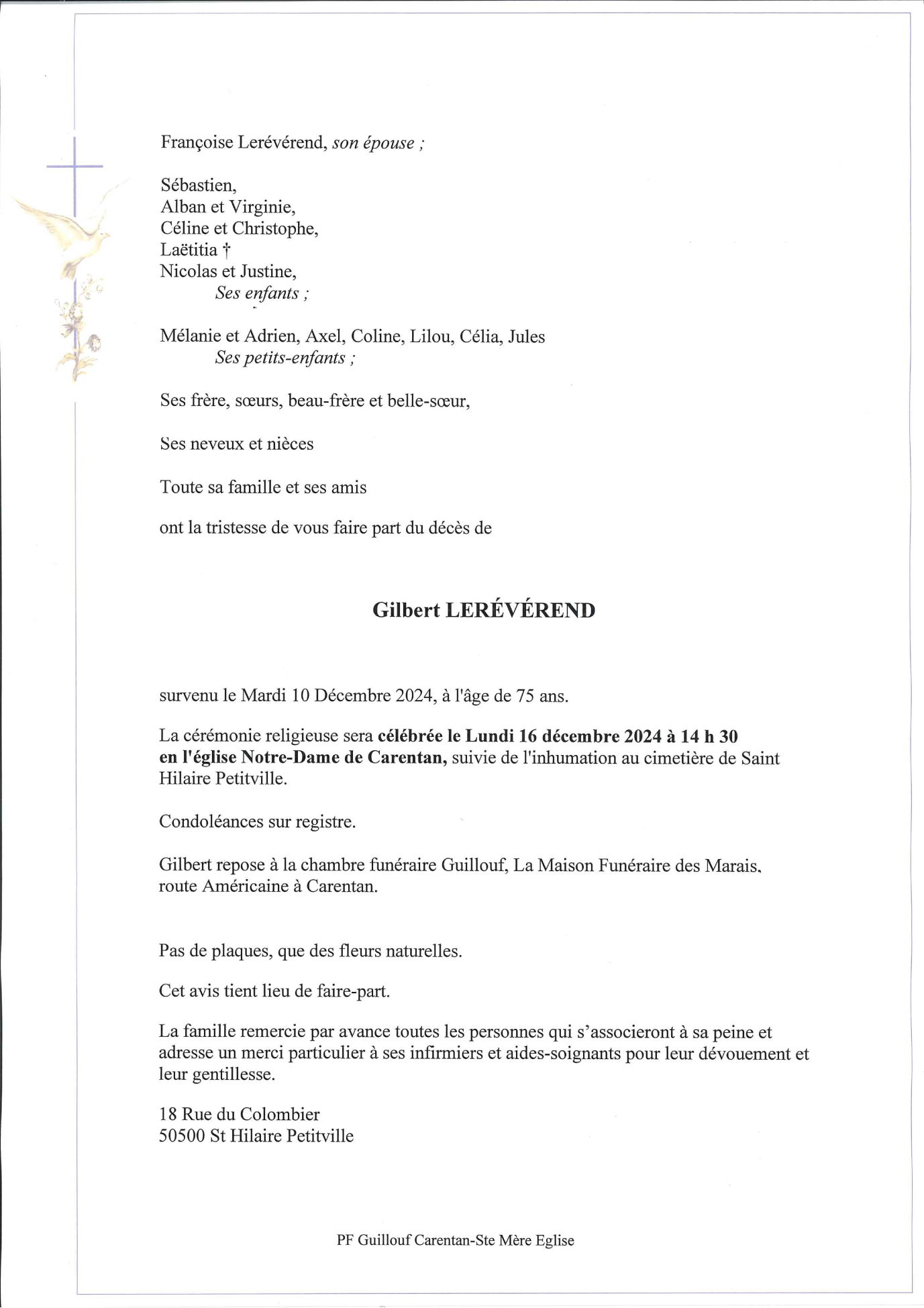 Décédé à Carentan (50500, France) le mardi 10 décembre 2024 à l'âge de 75 ans