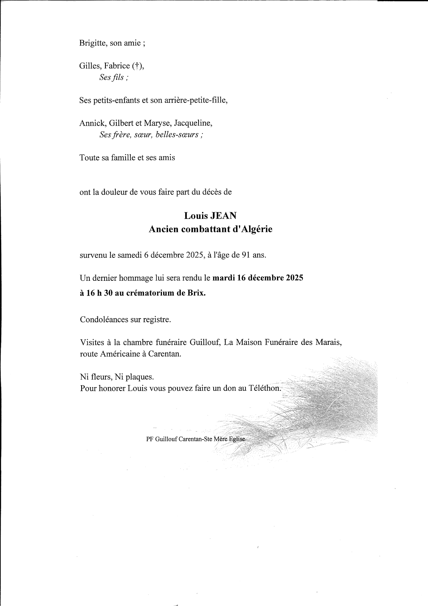 Décédé à Carentan (50500, France) le samedi 6 décembre 2025 à l'âge de 91 ans