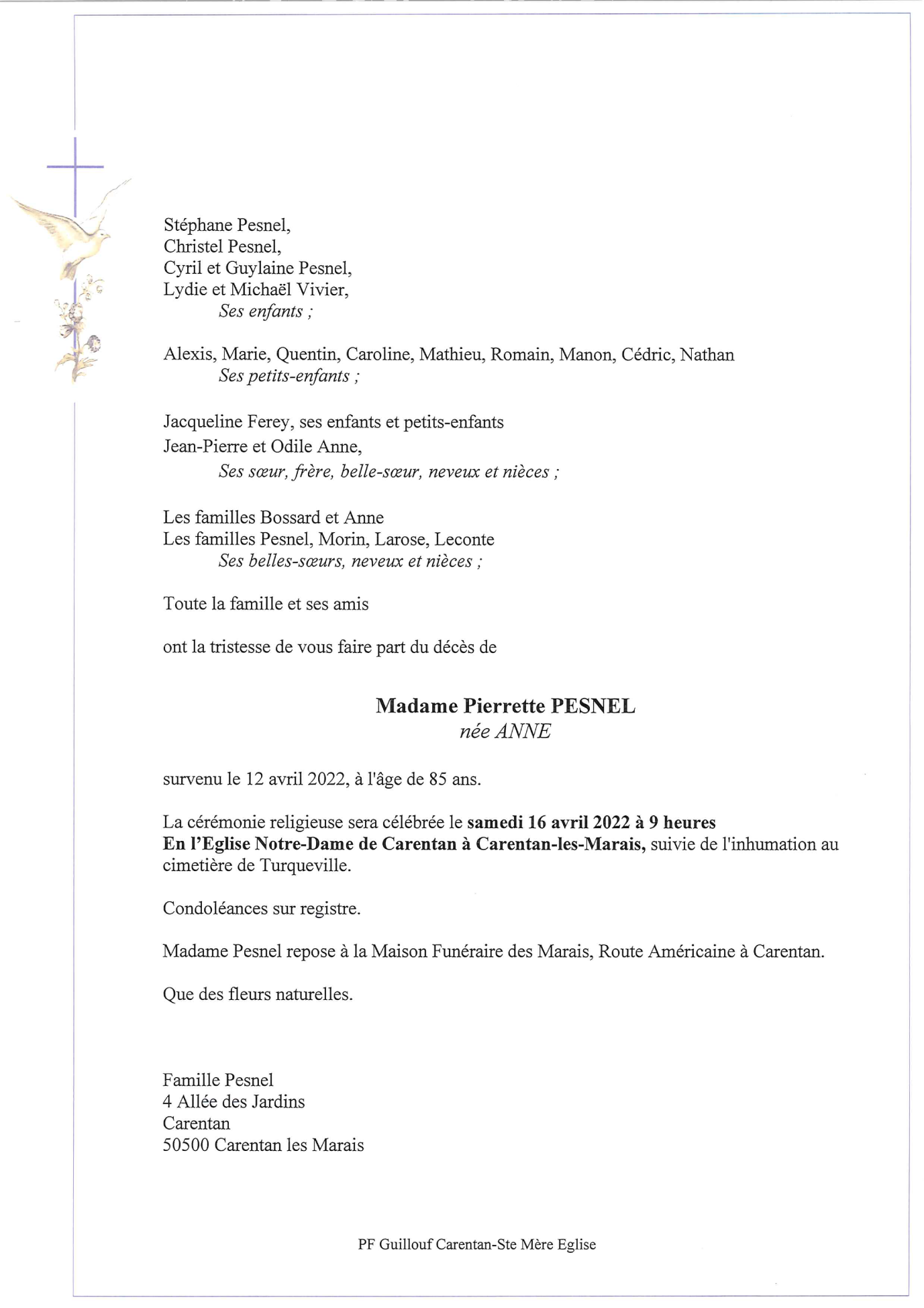 Madame Pierrette PESNEL née ANNE