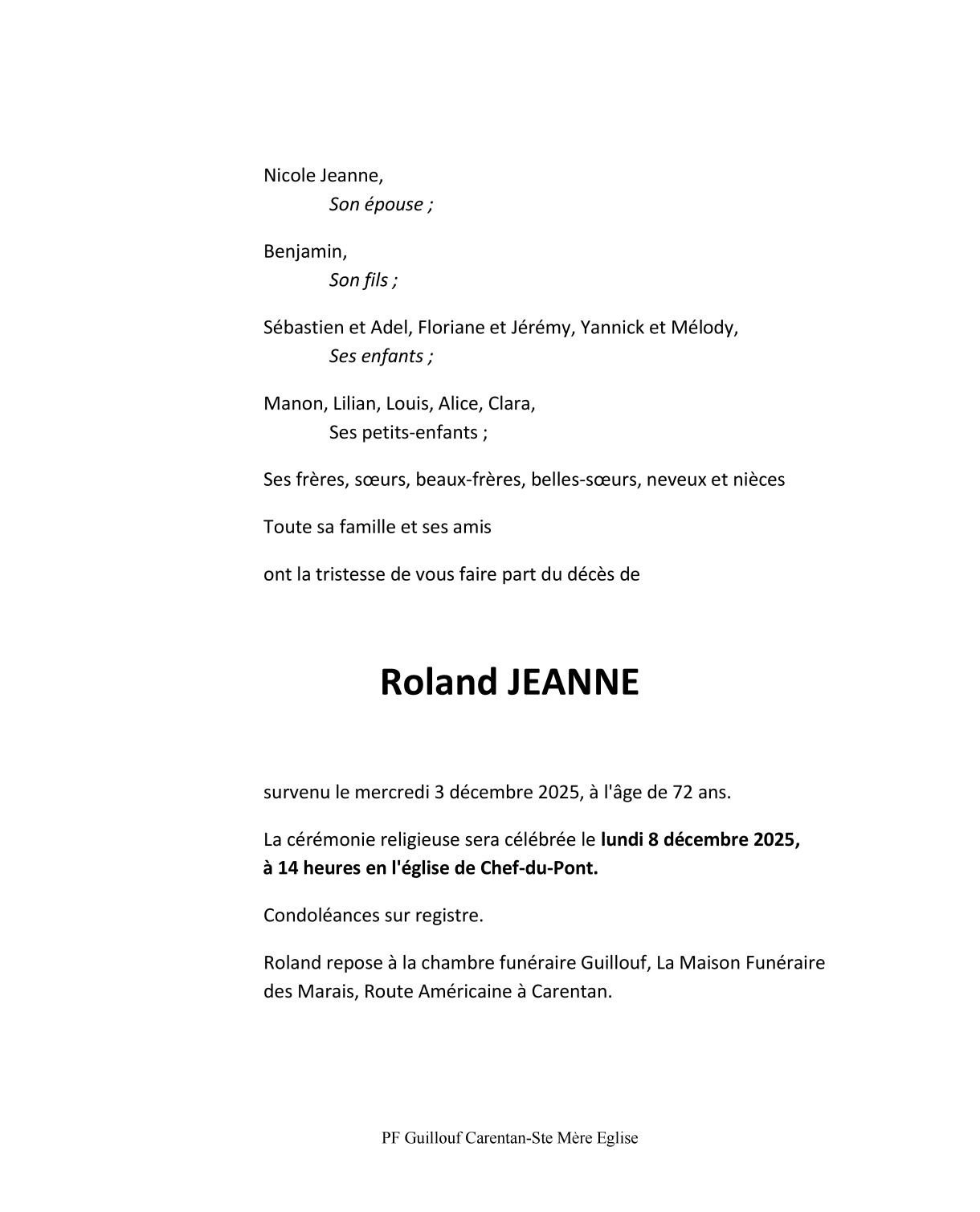 Décédé à Carentan (50500, France) le mercredi 3 décembre 2025 à l'âge de 72 ans