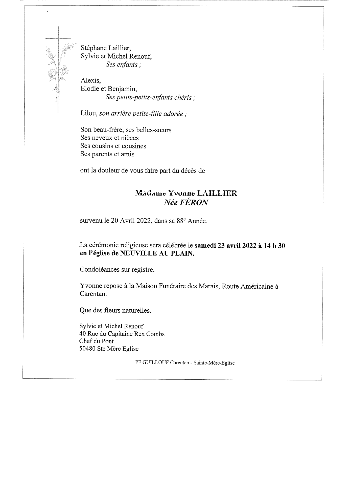 Décédée à Saint-Lô (50000, France) le mercredi 20 avril 2022 à l'âge de 87 ans
